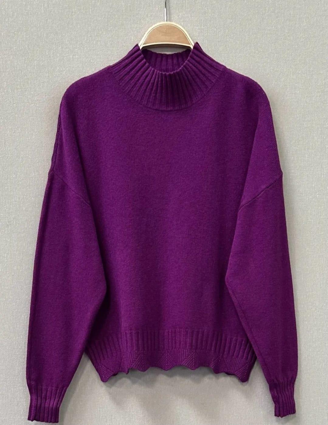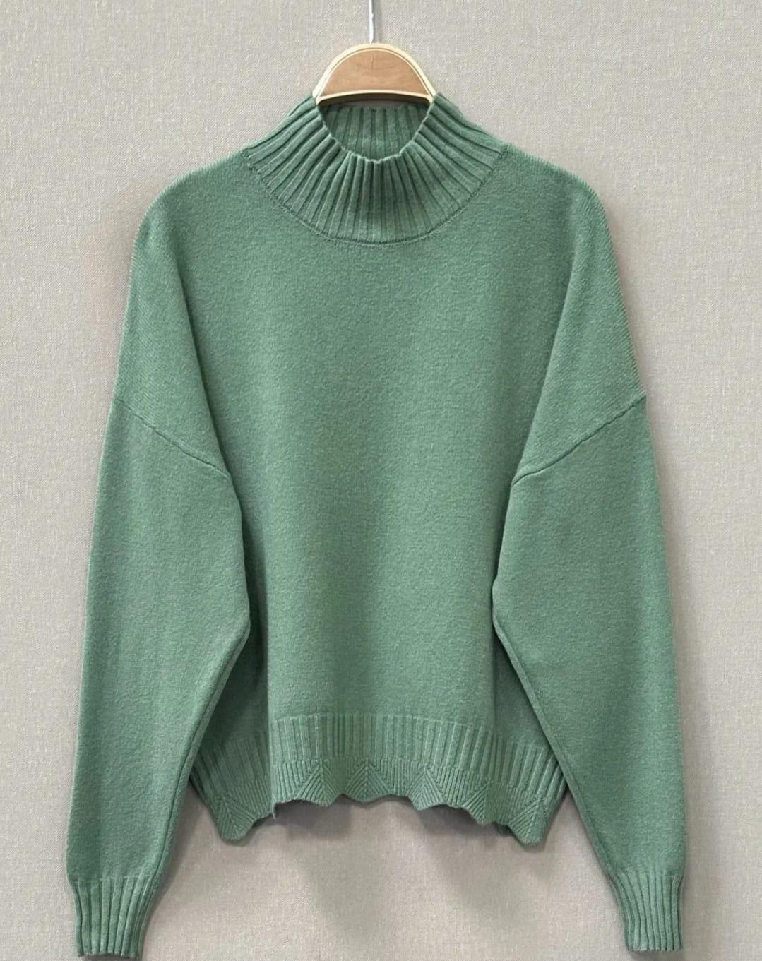 Jersey de punto gustoso con cuello subido suave y diseño sencillo con detalle en el bajo.