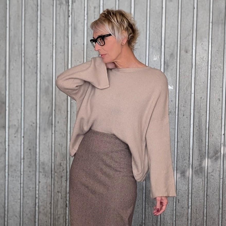 Jersey de punto de cuerpo medio con mangas anchas y estilosas, pensado para crear looks cómodos con un toque especial.