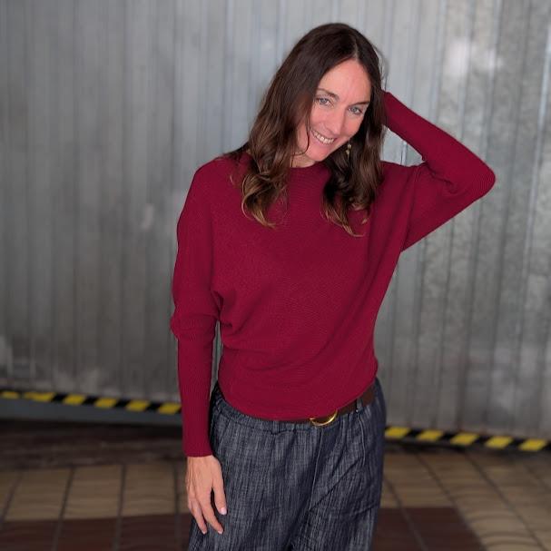 El jersey de punto murciélago de Guadalupe Loves Curling es la prenda ideal para quienes buscan comodidad sin renunciar al estilo. Su diseño con manga murciélago aporta un aire relajado y moderno, mientras que el cuello barco realza el escote de manera sutil y elegante.