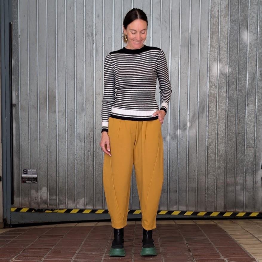 El Pantalón Mina es una prenda versátil y elegante que combina comodidad con estilo. Su diseño de corte holgado con pinzas delanteras y cintura elástica lo convierte en la opción ideal para quienes buscan un look sofisticado sin renunciar al confort. Perfecto para el día a día, la oficina o para crear un outfit minimalista con personalidad.