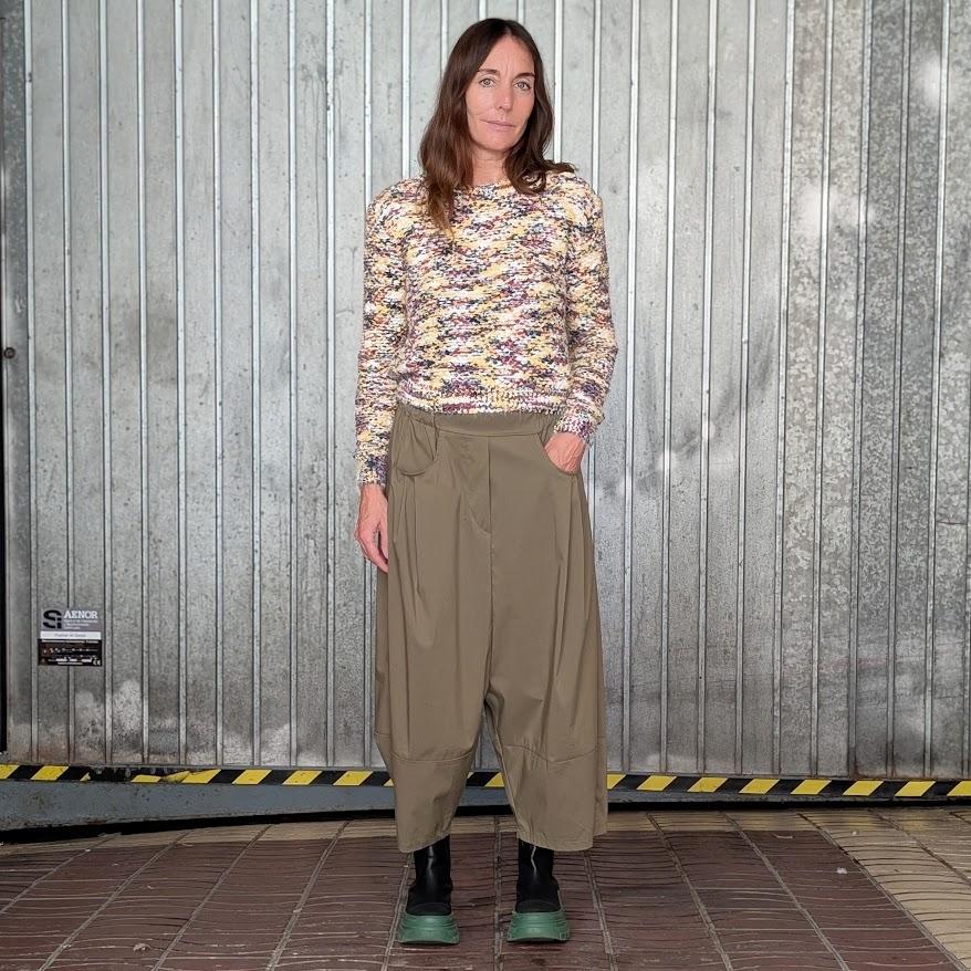 Pantalón de diseño baggy. Goma en la cintura. Bolsillos. Ajuste cómodo y holgado. Patrón estructurado.