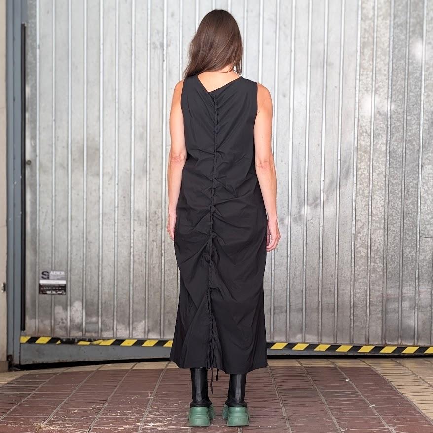 Vestido oversize de diseño estructurado. Sin mangas. Bolsillos.Fruncido delante y detrás.