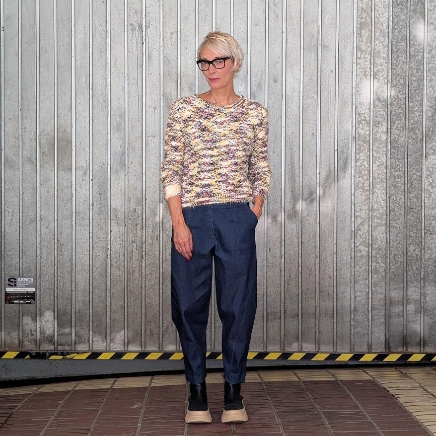 El pantalón vaquero Mina es un diseño de inspiración japonesa que combina comodidad y estilo. Con un corte bombacho de tiro caído, pernera ancha y cinturilla elástica, aporta un aire desenfadado y actual. Confeccionado en tejido denim suave, ofrece un ajuste holgado ideal para looks urbanos y versátiles. Disponible en tallas desde la 38 a la 44, se convierte en una prenda imprescindible para quienes buscan una alternativa moderna al vaquero clásico.