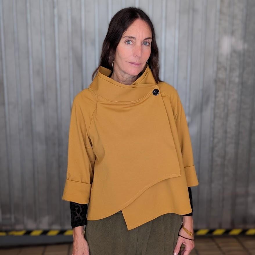 La chaqueta Audrey es una prenda versátil y sofisticada, diseñada con un elegante corte tipo capa que aporta movimiento y ligereza al look. Su cuello chimenea le da un aire contemporáneo, mientras que el tejido en punto milano garantiza comodidad, estructura y un acabado impecable. Disponible en varios colores (negro, mostaza, teja y verde caqui), es una chaqueta perfecta tanto para un estilo casual como para un conjunto más arreglado. Su diseño atemporal y su ajuste holgado la convierten en un imprescindible de temporada.