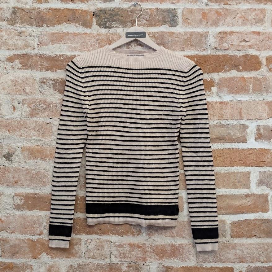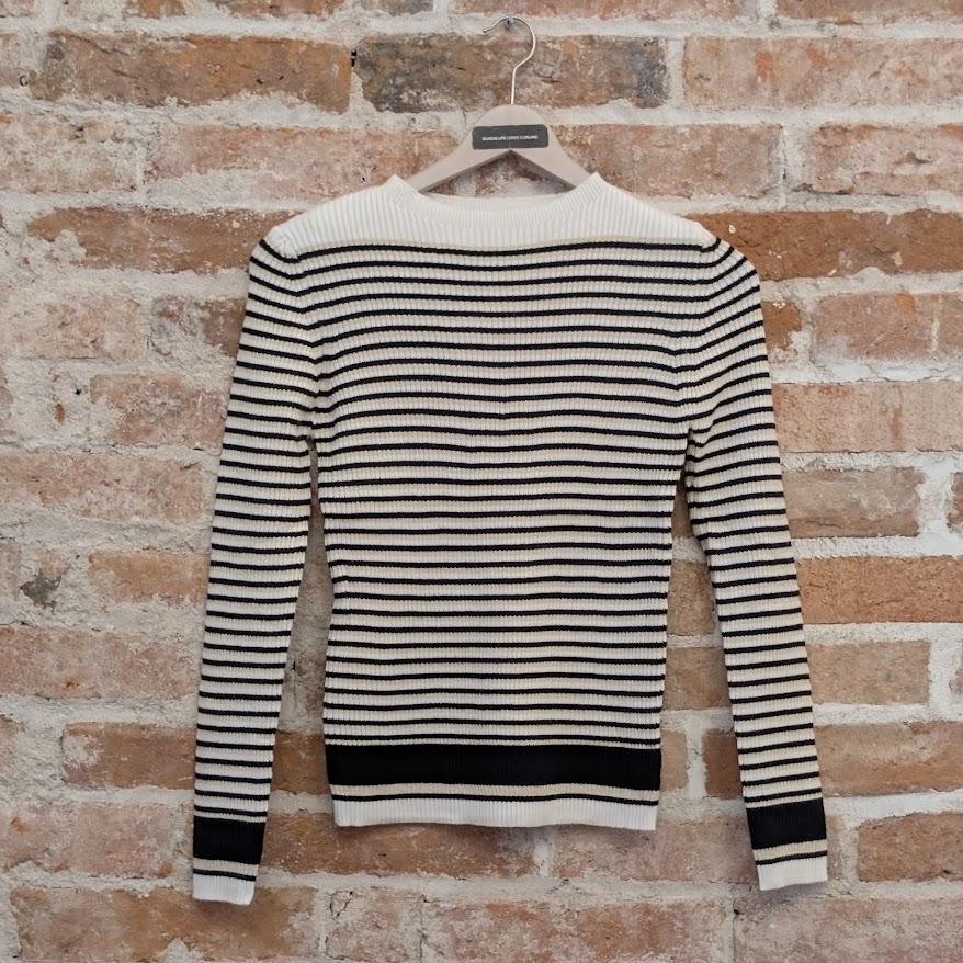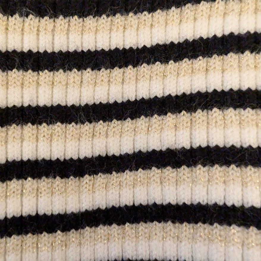 Jersey de rayas de punto con cuello redondo. Hilos de lúrex. Un básico versátil y cómodo para el otoño-invierno.