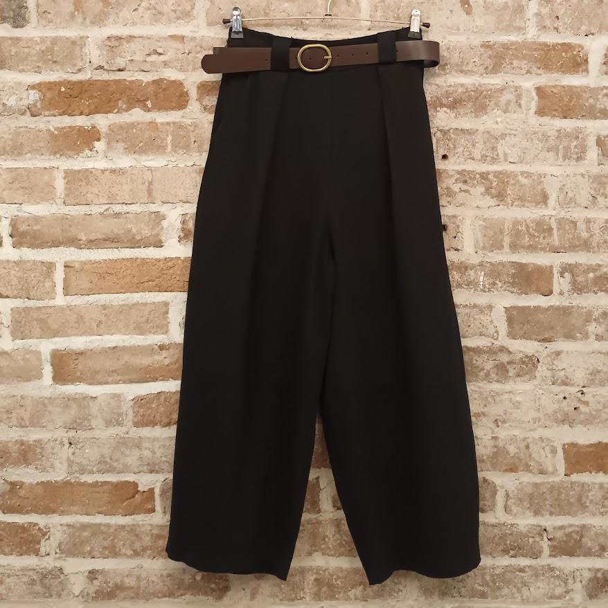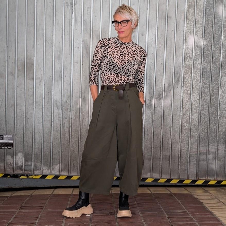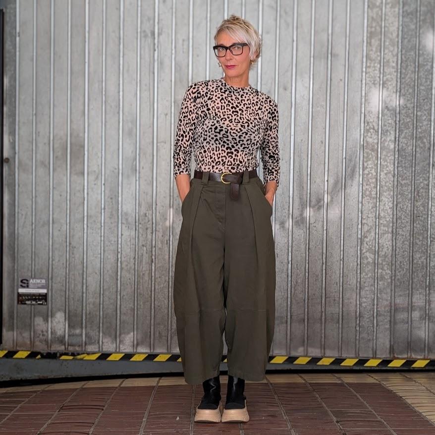 Su diseño con pinzas frontales y cinturilla alta con trabillas estiliza la silueta, mientras que el corte amplio y fluido aporta movimiento y personalidad a cualquier look.