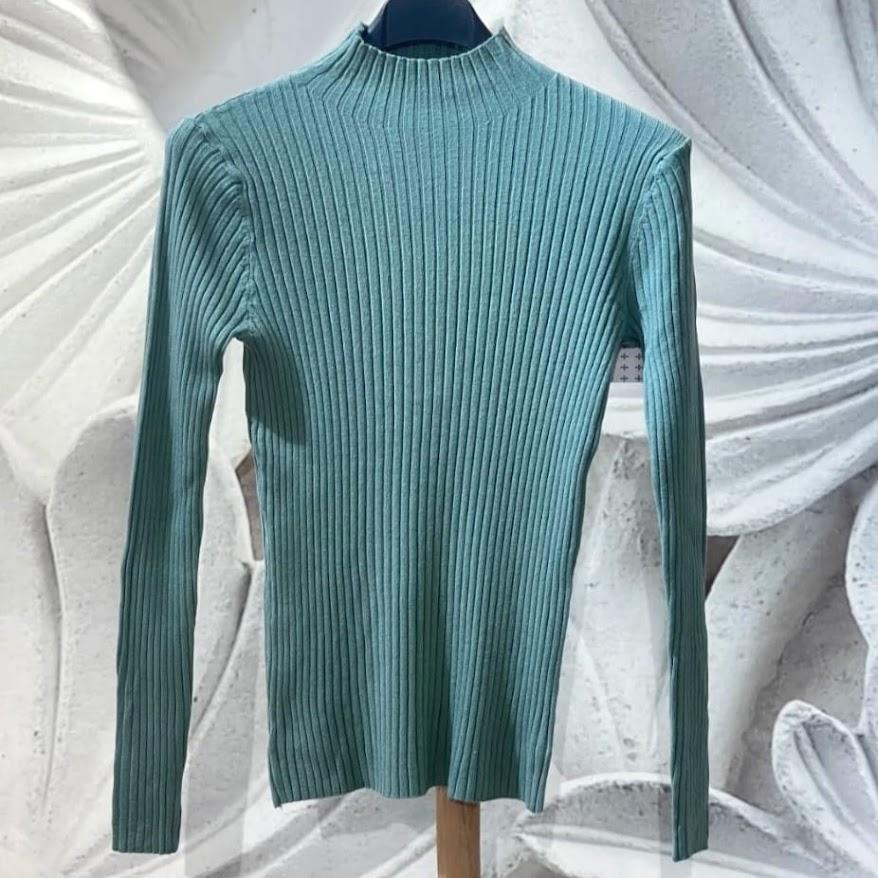 El cuello Perkins —a medio camino entre el cuello alto y el redondo— aporta un toque elegante y favorecedor. Ideal para llevar solo o bajo americanas, cazadoras o chalecos durante los meses más fríos.