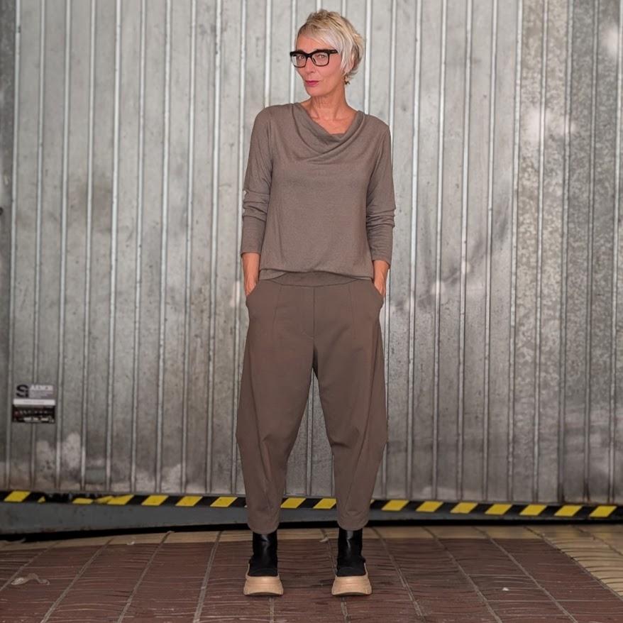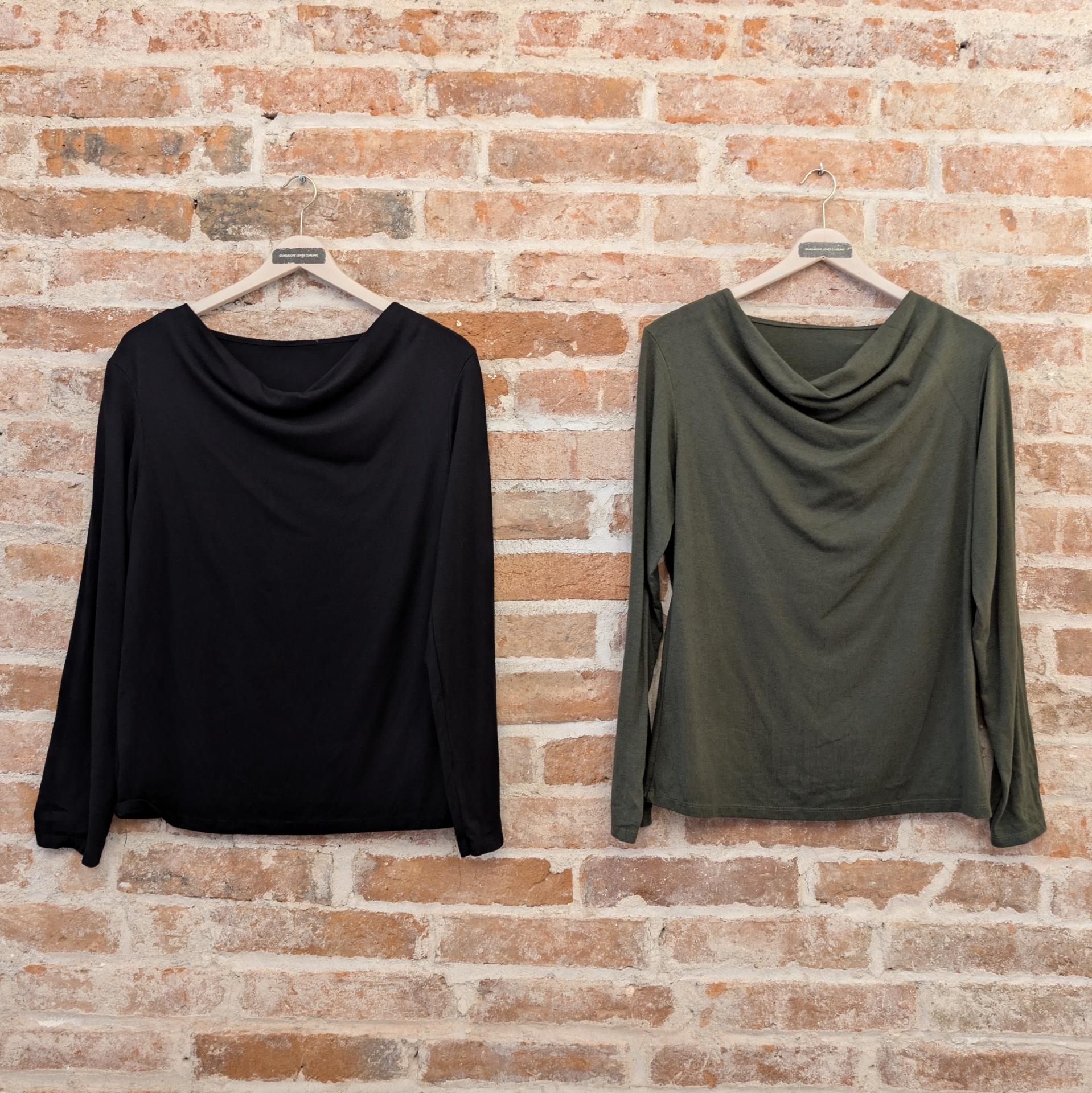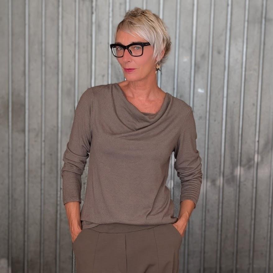 Jersey de punto suave con cuello caído y corte recto. Elegante, cómodo y fácil de combinar para un look natural y sofisticado.