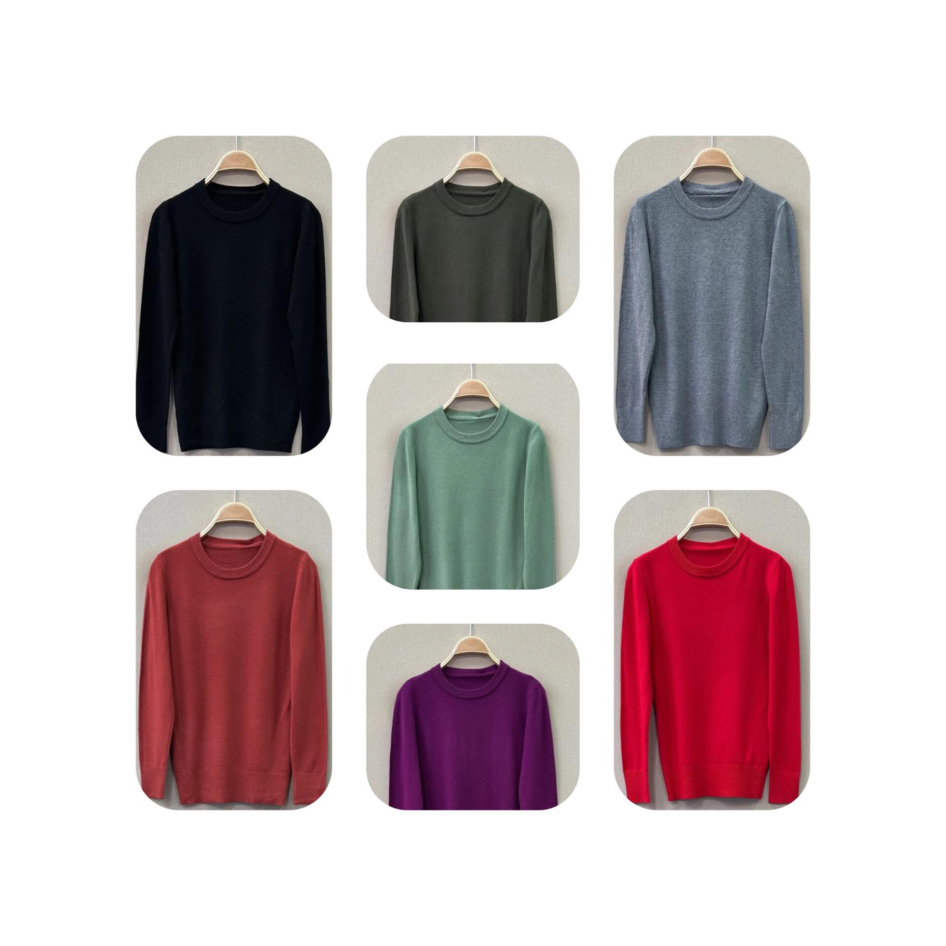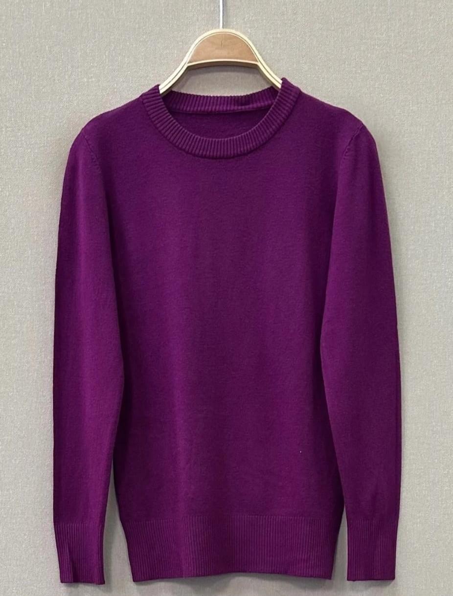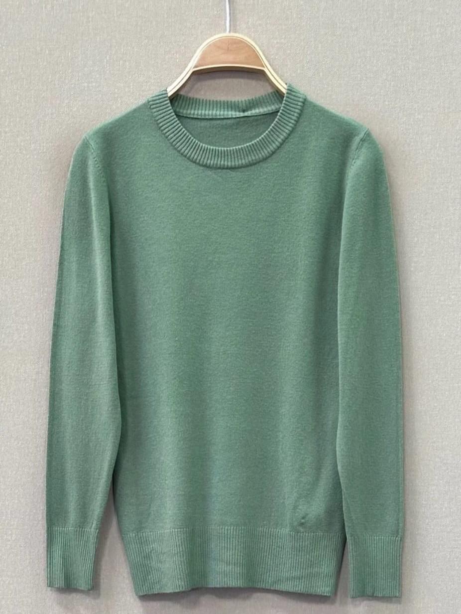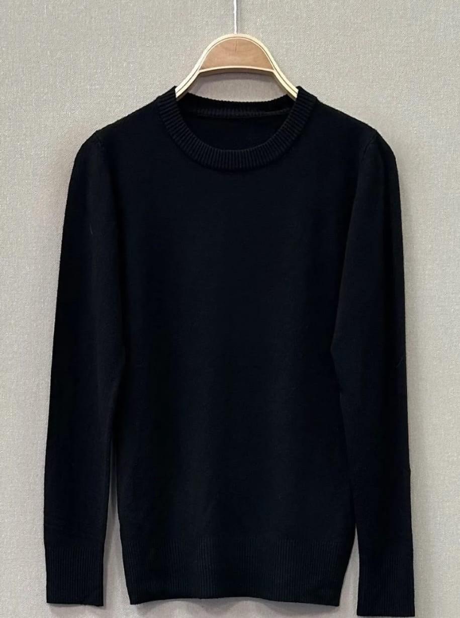Jersey de punto suave con cuello redondo y acabado fino. Ideal como prenda básica para combinar con cualquier look.