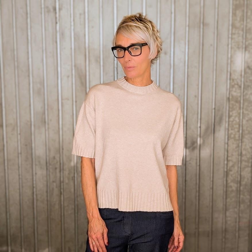 Jersey de punto de manga corta por encima del codo con diseño actual y atemporal, ideal para combinar en cualquier época del año. Su tejido suave y ligero aporta una sensación muy agradable al tacto, ofreciendo confort sin renunciar al estilo.