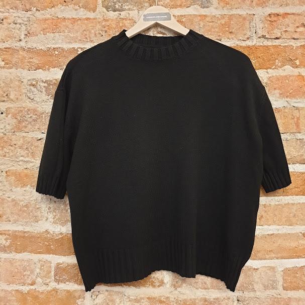 Jersey de punto fino con manga corta por encima del codo, cuello redondo y acabado acanalado en mangas y bajo. Suave, cómodo y fácil de combinar en cualquier ocasión.