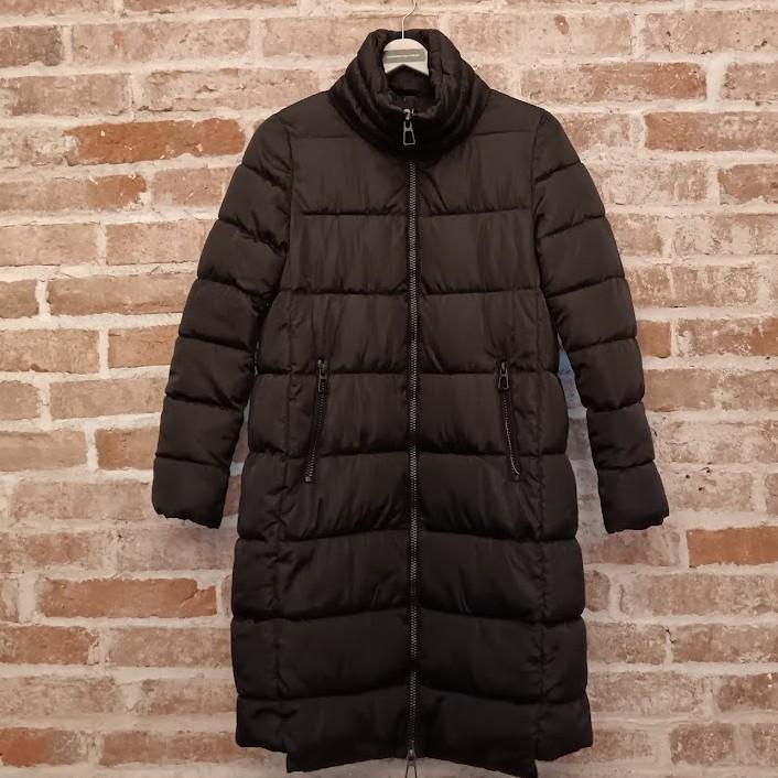 Abrigo acolchado con cuello subido y puños elásticos interiores.