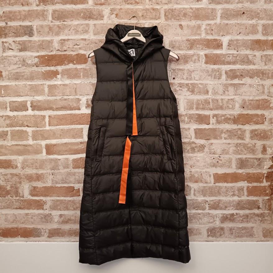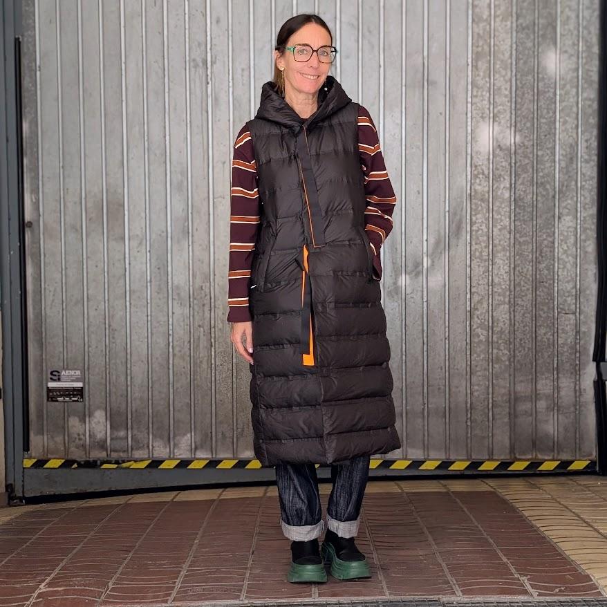 Chaleco acolchado largo con capucha. Perfecto para crear looks urbanos con estilo.