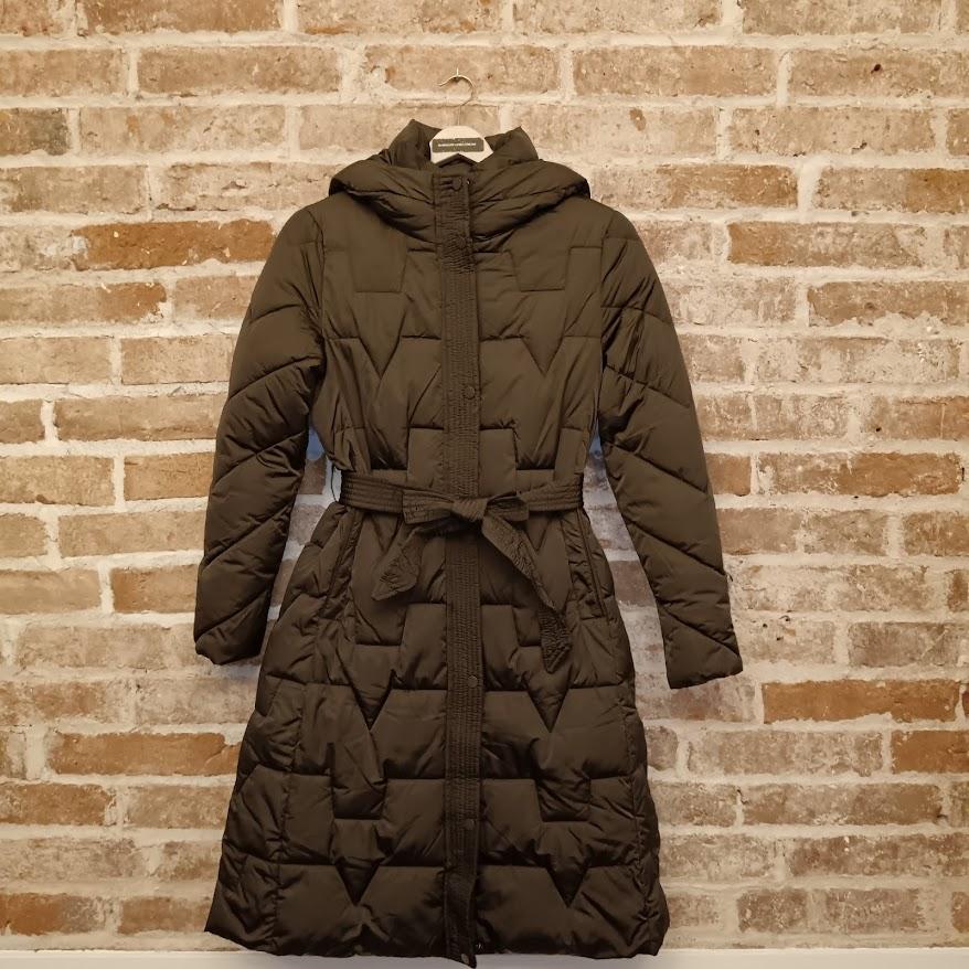 Abrigo acolchado con capucha, bolsillos de botón y puños ajustado.
