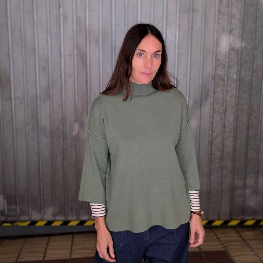El Jersey Tessa es sinónimo de confort. Su diseño relajado, cuello subido y punto suave lo convierten en un imprescindible de estilo natural.