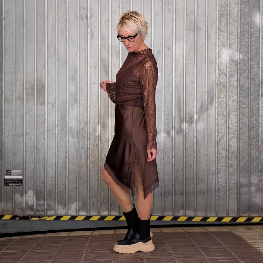 Además, el Vestido Gala ofrece una versatilidad sorprendente: también puede usarse como top lencero junto a unos vaqueros, creando un look chic, moderno y muy favorecedor sin renunciar a la comodidad. Una prenda que se adapta tanto a outfits sofisticados como a estilismos casual con un toque de glamour.