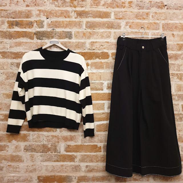 Jersey de punto suave con diseño a rayas ancho y estilo moderno.