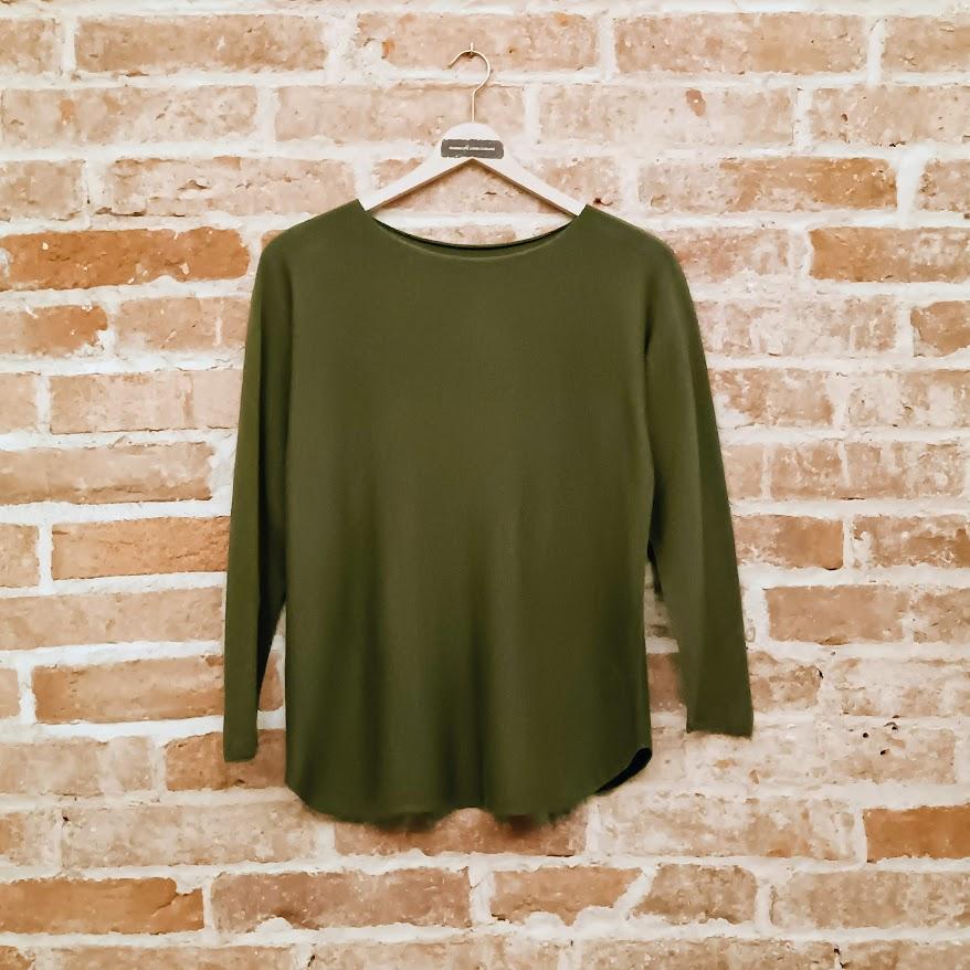 El jersey básico de cuello barco combina comodidad y diseño minimalista en una prenda ligera y versátil.