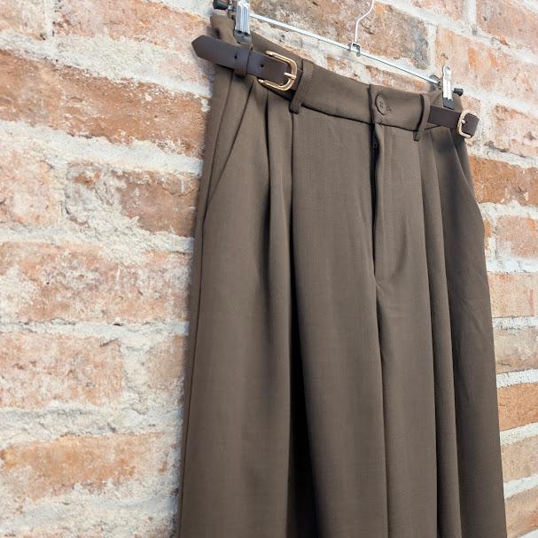 Pantalón de pinzas de cintura alta. Bolsillos. Cinturilla con detalles de hebillas. Bolsillos.
