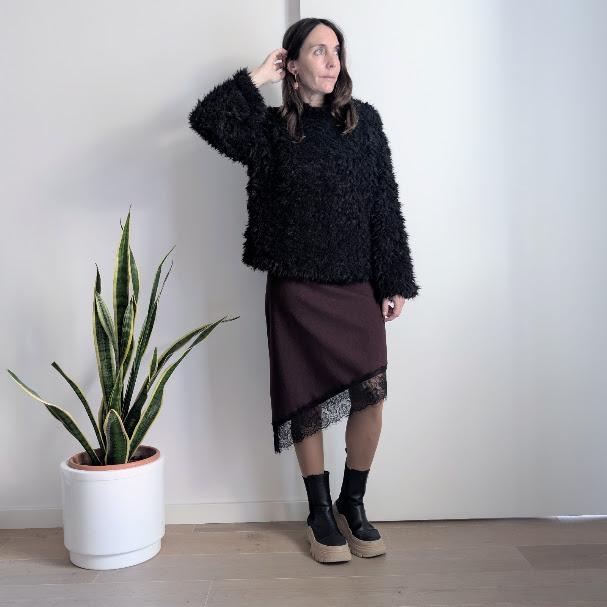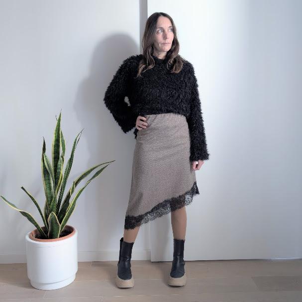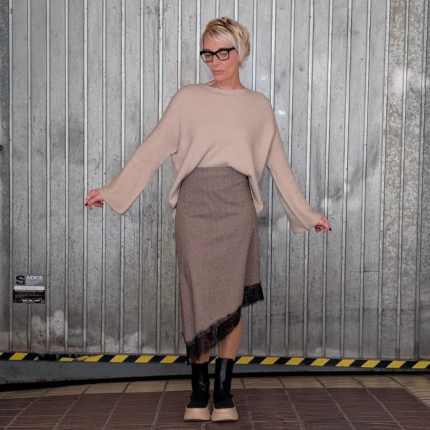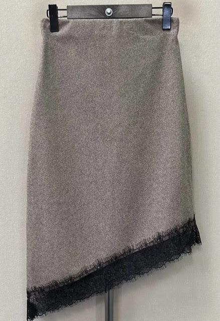 Falda recta con bajo de encaje en diagonal