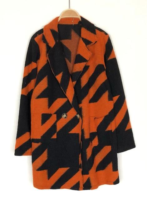 Abrigo de corte recto con estampado geométrico y estilo actual. Solapa. Corte sastre. Bolsillos.