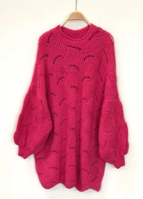 Su corte relajado y mangas ligeramente amplias lo convierten en un jersey cómodo y versátil, perfecto para llevar con pantalones, faldas o sobre vestidos en los meses más frío