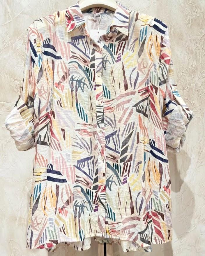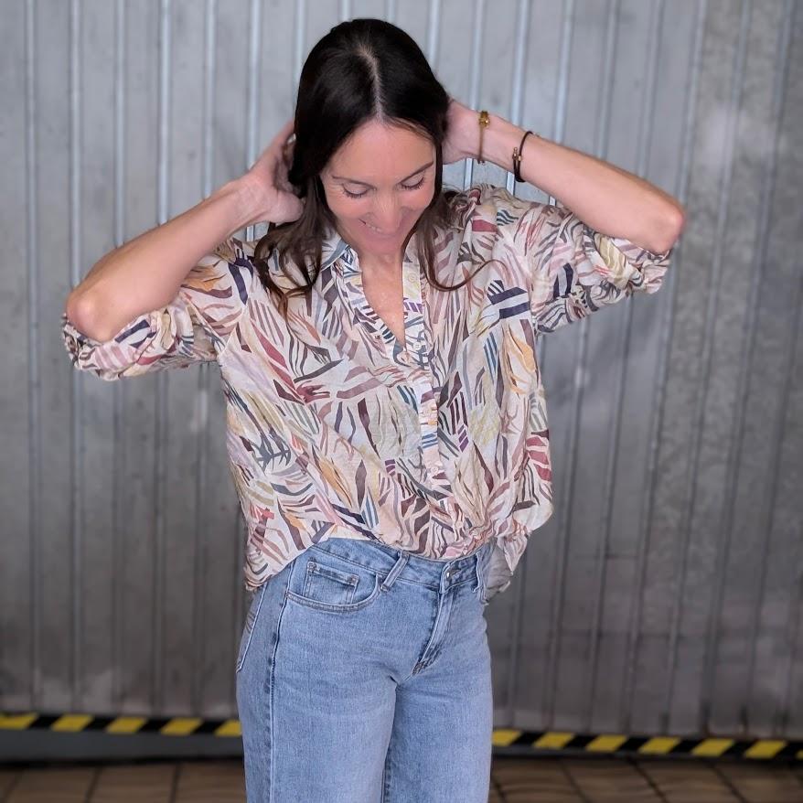 Camisa estampada de corte cómodo y tejido ligero, ideal para looks relajados y femeninos de diario. Cierre de botones. Botón en la manga para acortarla.