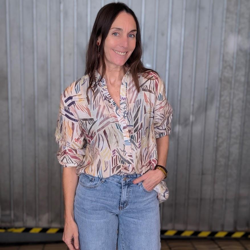 Su corte recto y holgado favorece todo tipo de siluetas, mientras que el diseño estampado añade un toque especial a cualquier conjunto. Es ideal para llevar tanto suelta como ligeramente metida por dentro, combinada con pantalones, faldas o vaqueros.