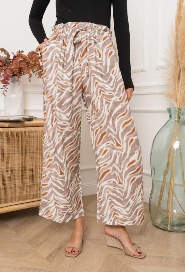 El Pantalón Margaux apuesta por la comodidad con un diseño fluido, cintura elástica y un estampado con personalidad. Ideal para looks relajados con estilo.