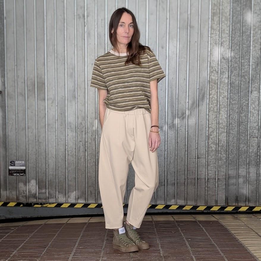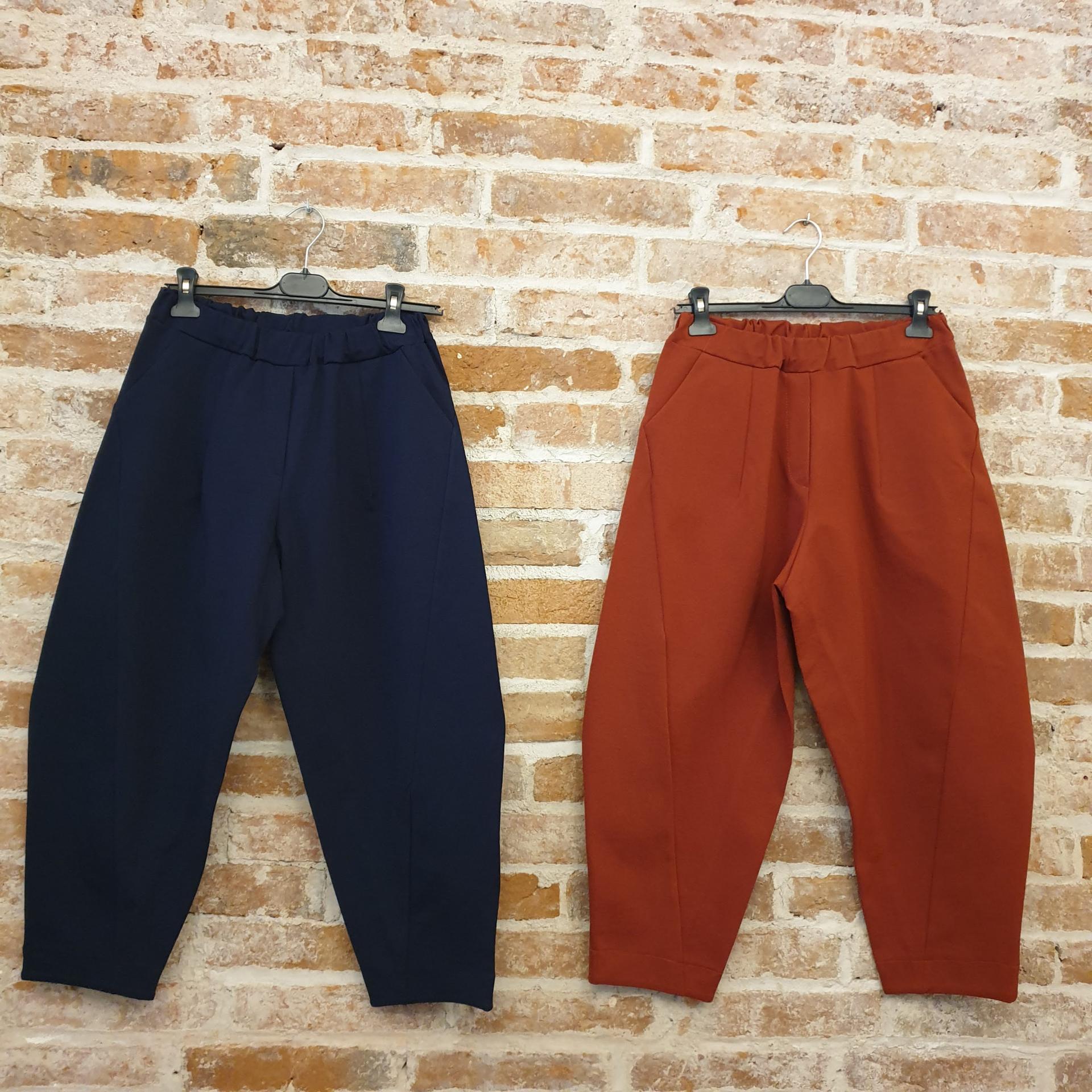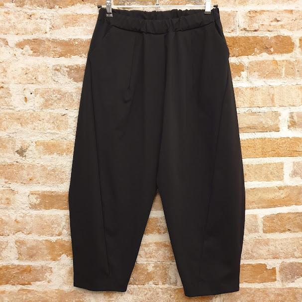 Pantalón oversize de diseño tipo japonés. Pernera ancha con cinturilla elástica. Bolsillos. Corte bombacho de tiro caído. Sin cierres. Ajuste holgado y cómodo. Tejido punto milano.