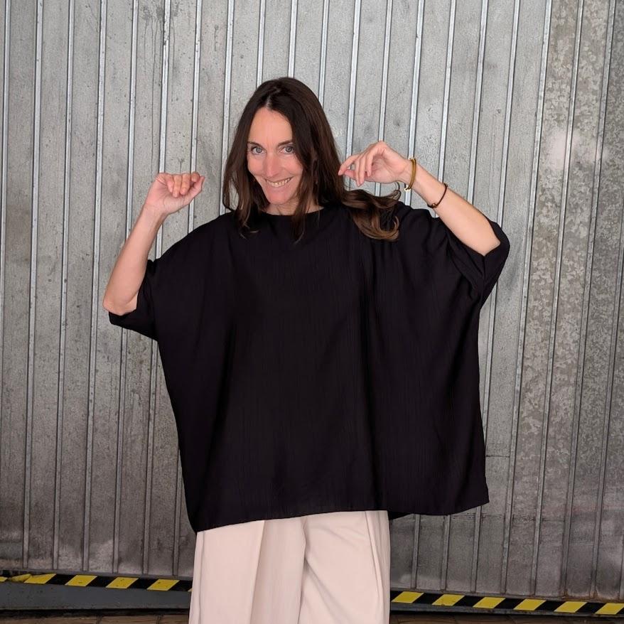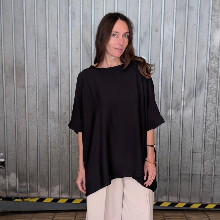 Este tipo de blusón destaca por su corte amplio, que permite que la prenda caiga con naturalidad y resulte muy cómoda de llevar durante todo el día. El diseño minimalista lo convierte en una pieza versátil que se integra fácilmente en distintos estilos.