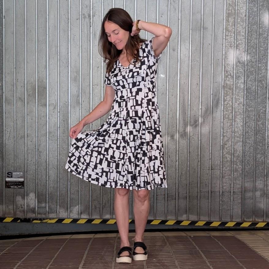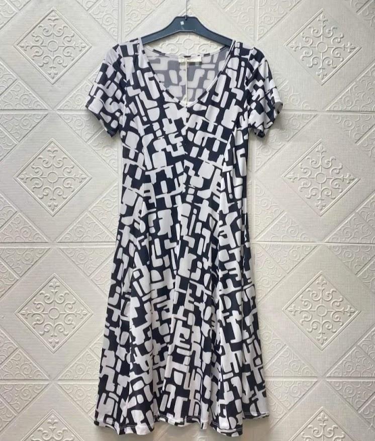 El vestido estampado Soho es una prenda fluida y femenina con corte evasé que aporta movimiento y comodidad. Perfecto para looks versátiles y con estilo.
