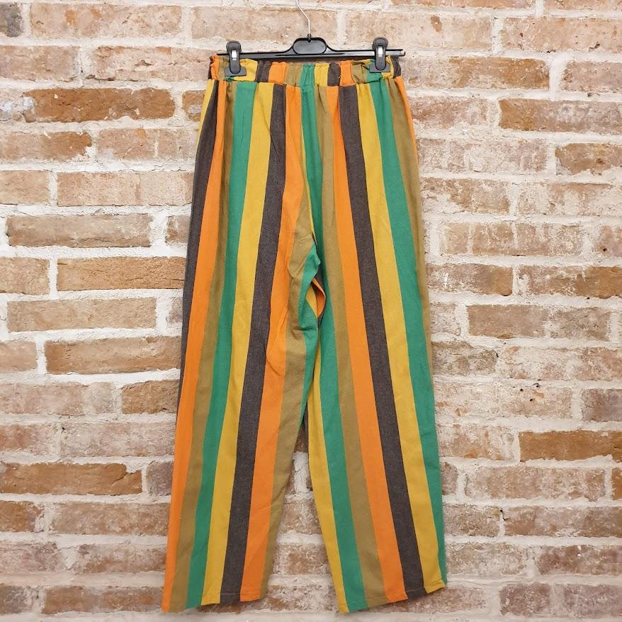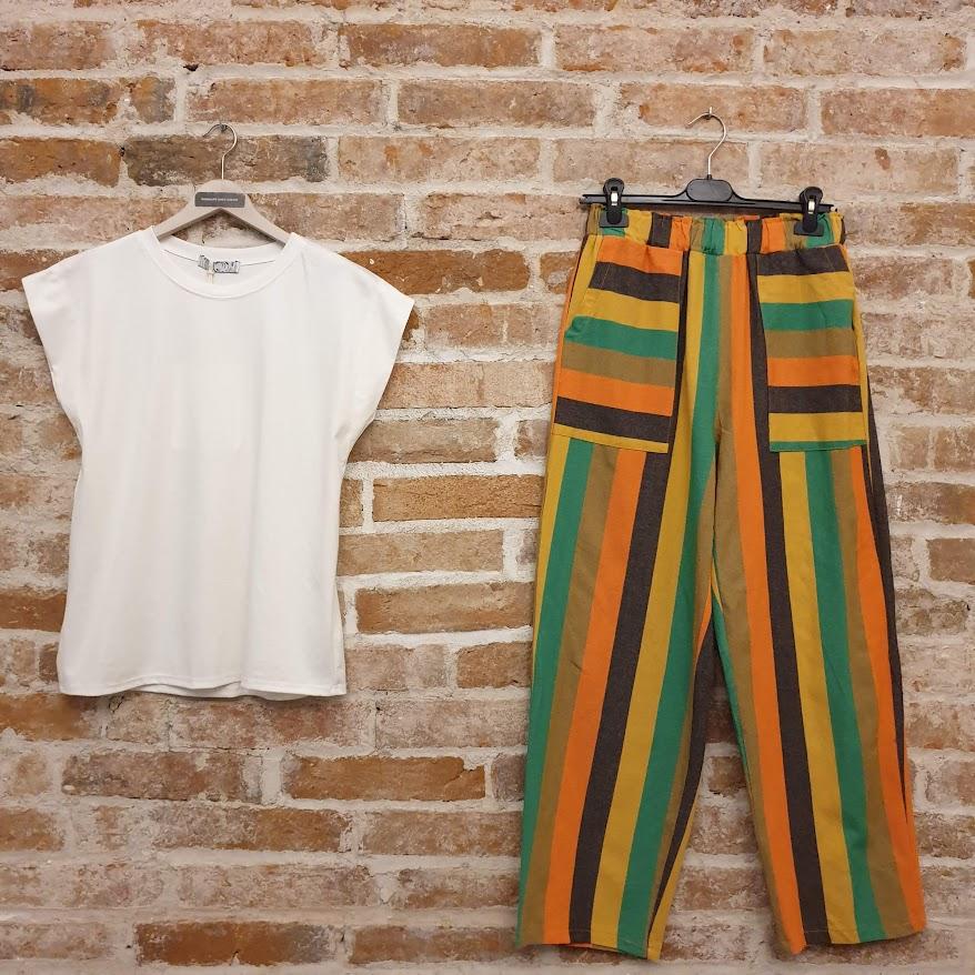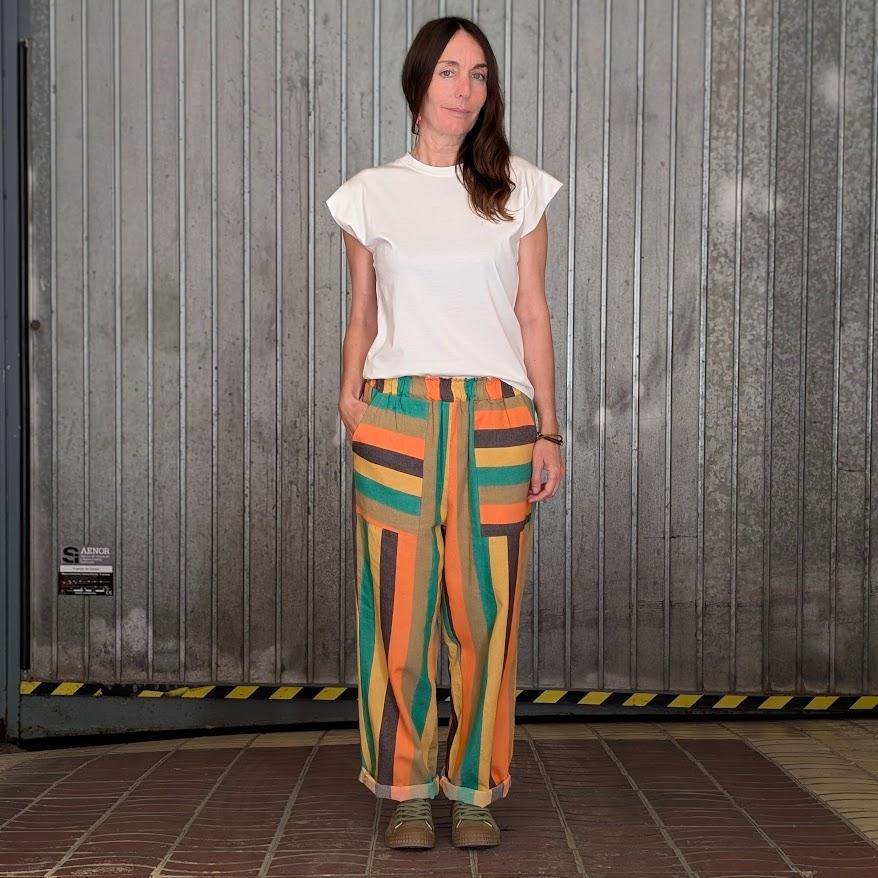Pantalón de rayas verticales, una de las tendencias clave de la temporada. Cómodo, favorecedor y fácil de combinar.