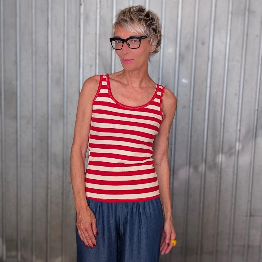 Camiseta de tirantes con rayas, ligera y versátil. Un básico imprescindible.